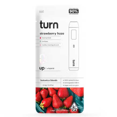 Turn Strawberry Haze cart feature a vibrant strawberry-forward taste complemented by light citrus and herbal hints. The flavor is smooth from start to finish, making it an excellent choice for users who value taste just as much as quality.